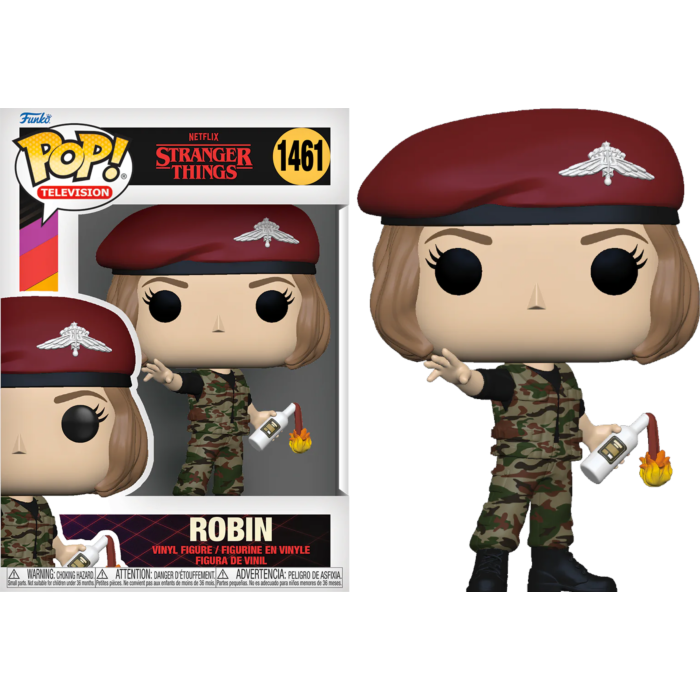 Funko's new wave of Stranger Things 4 Pop! Vinyl Figures features a range of favourites from the series, including Robin, in full camouflage, wearing a red beret, and Molotov cocktail in hand!
